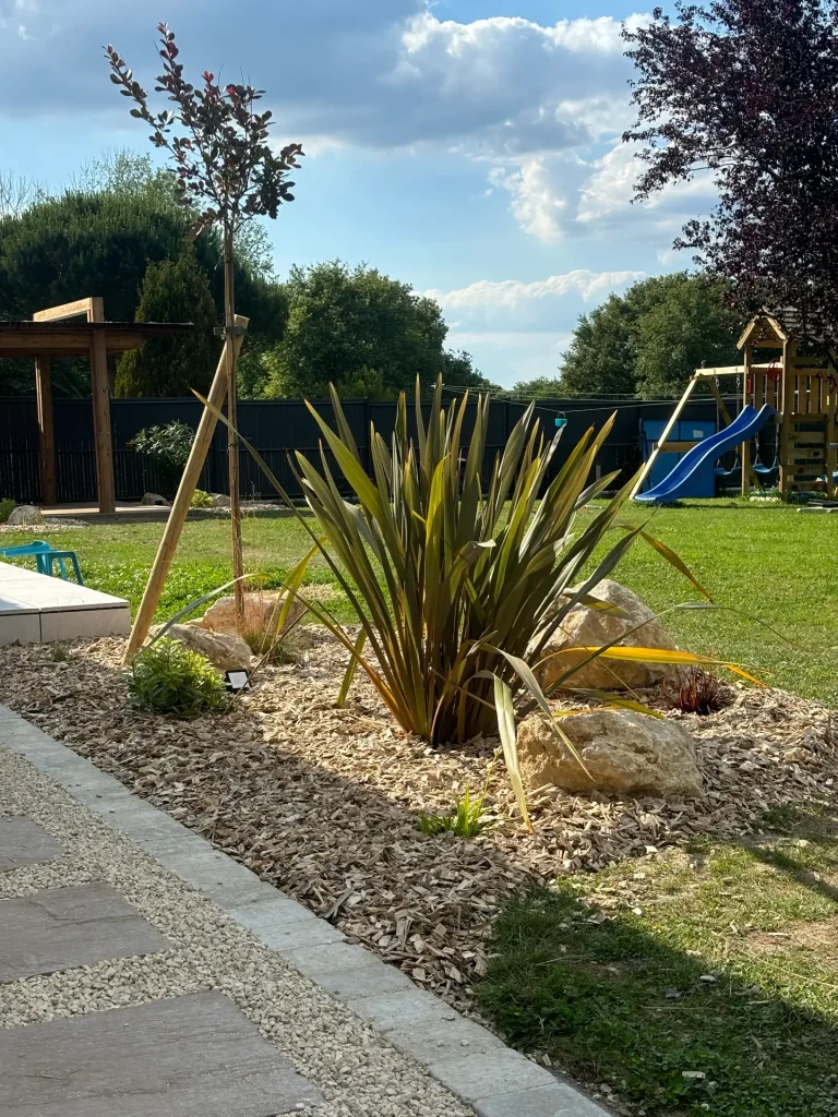 Végétalisation du jardin afin de structurer l’ensemble du terrain en apportant une touche naturelle.