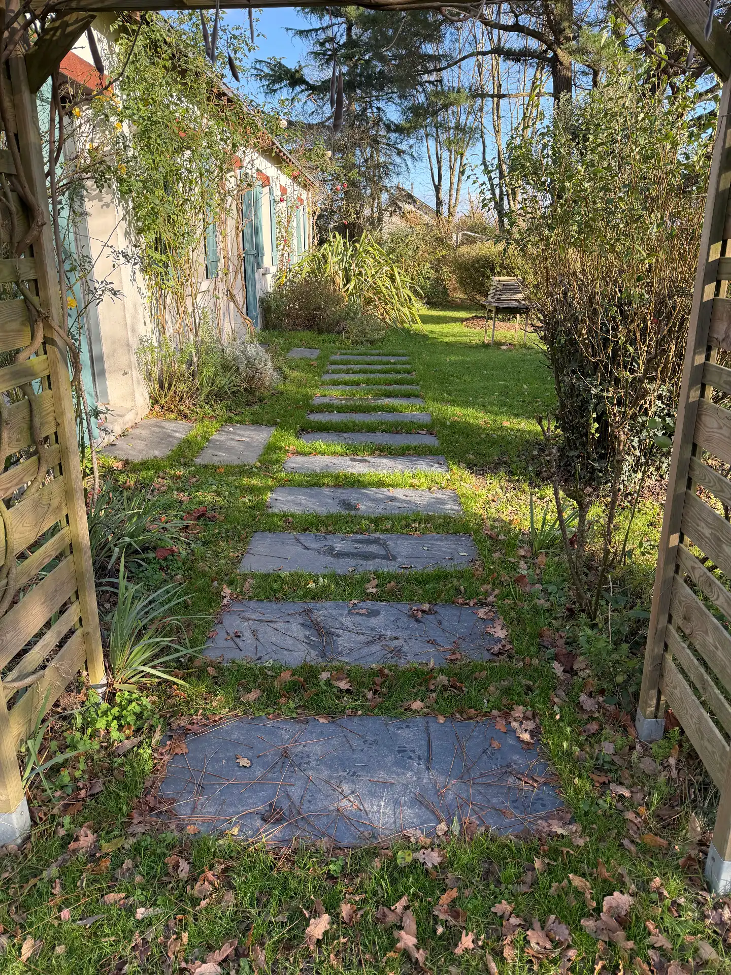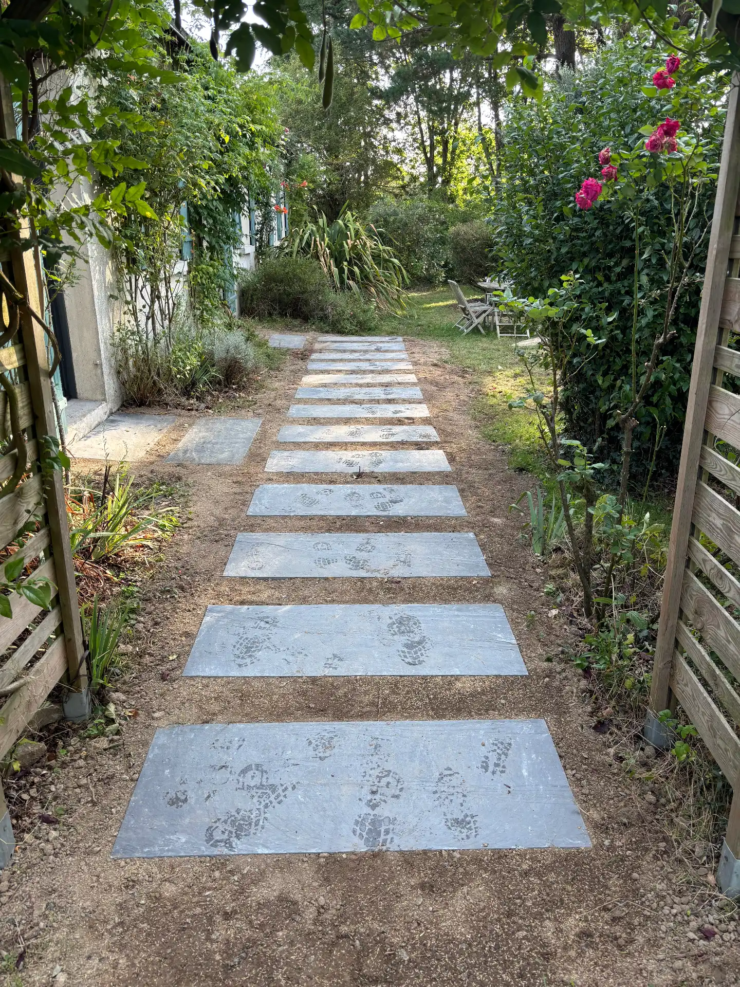 Suite à la création d’un chemin en dalles d’ardoise, la circulation dans le jardin est désormais plus