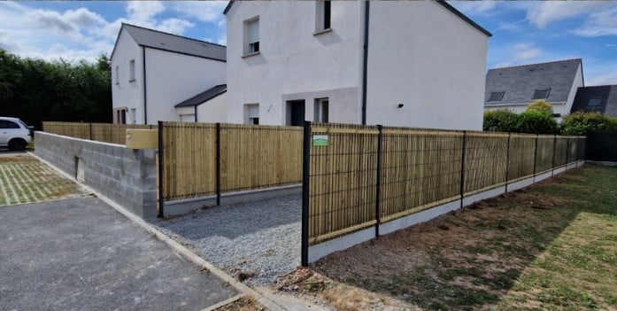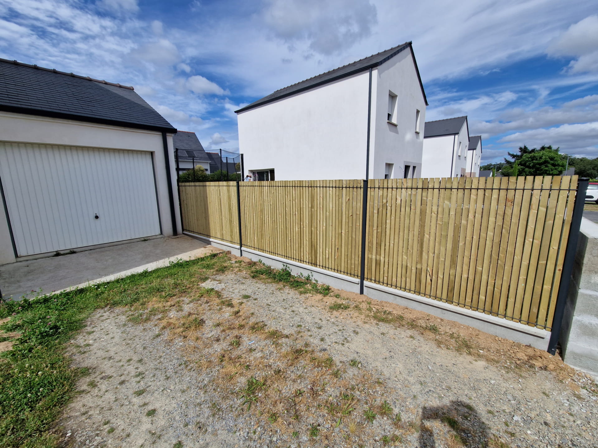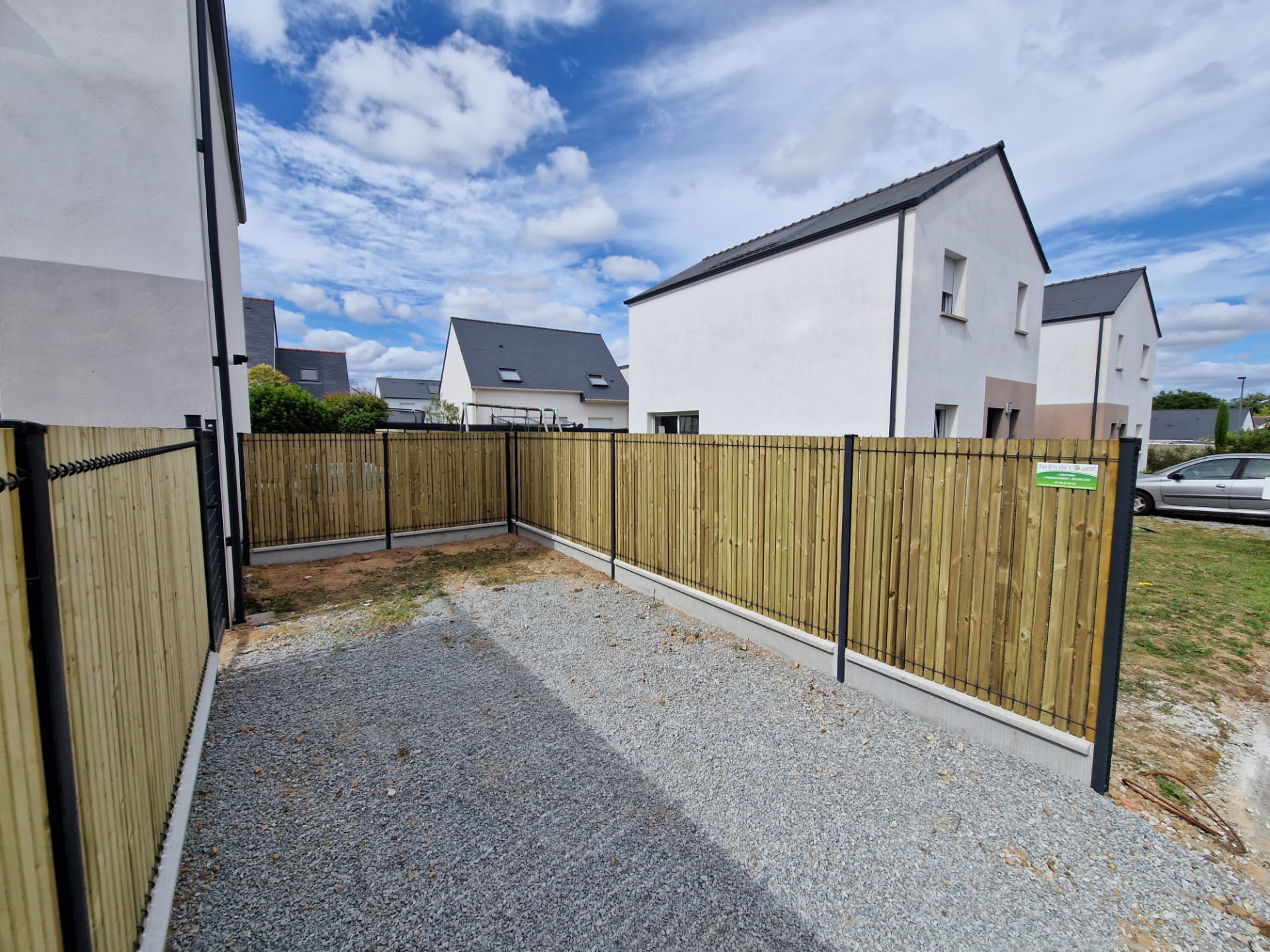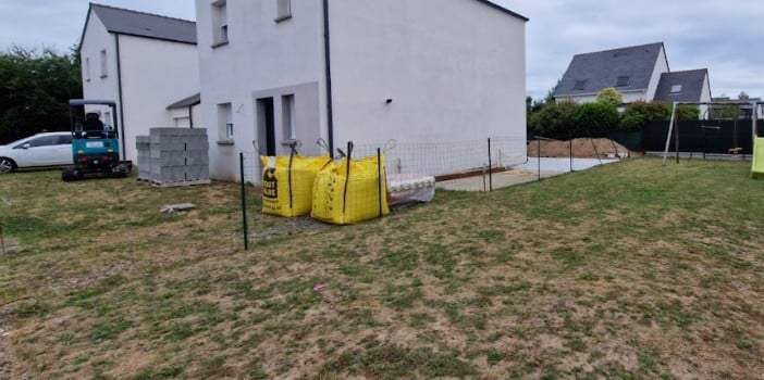 À la suite de la réalisation d’un mur maçonné et à la pose des clôtures, l’espace extérieur est désormais
